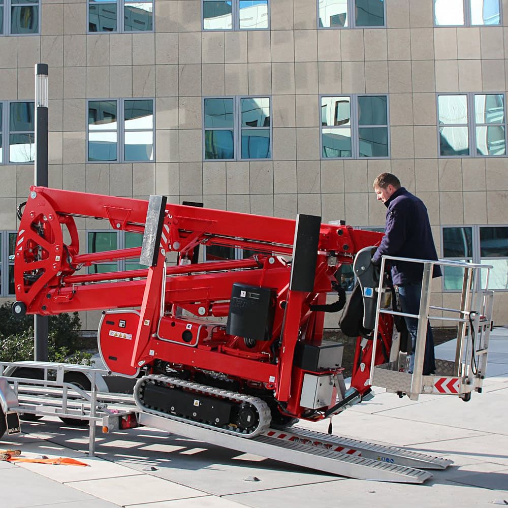 Now you can go more places around the job site thanks to the low weight and non-marking tracks on the Compact Crawler boom. These Compact Crawler boom lift features a tracked wheel carriage that climbs steps and a narrow chassis for access through doorways, gates and yards. Jobs that used to require skilled positioning are much easier to work now.