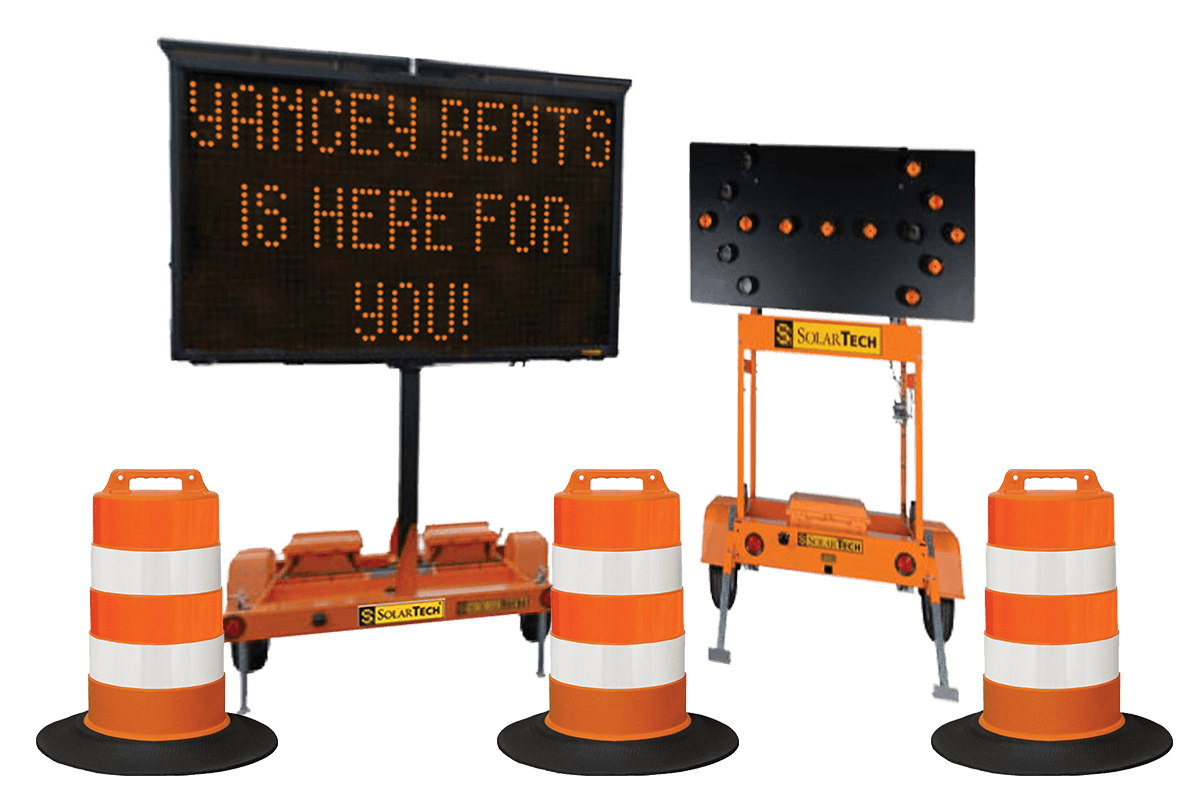 Yancey Rents wants to keep you and your employees safe. The next time you need Directional Boards or Traffic Barrels….