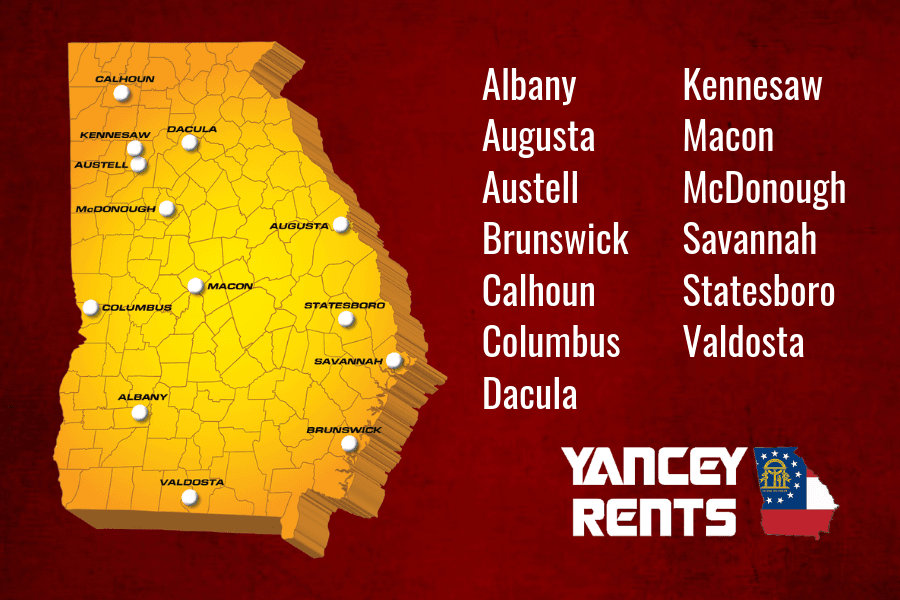 Yancey Rents has rental store facilities conveniently located throughout Georgia.